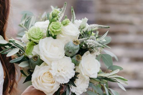 Nelken, Rosen, Mohn, Lisianthus, Olive, Astrantia, Veronika