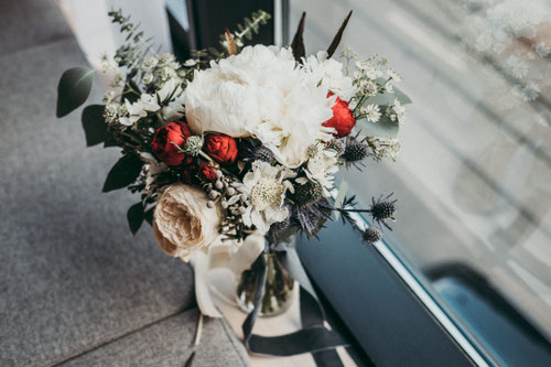 Distel, Röschen, Emma Woodhouse,Astrantia,Grey Berries, Eucalyptus, Pfingstrosen