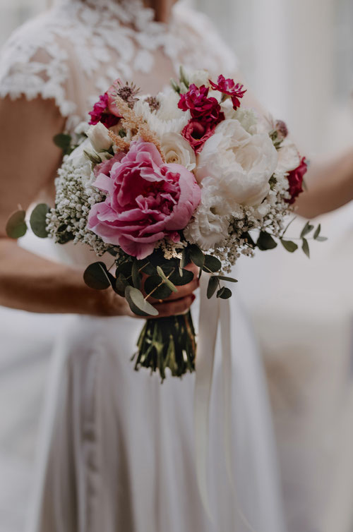 Pfingstrosen, Astrantia, Schleierkraut, Rosen, Lisianthus, Eukalyptus, Astilben