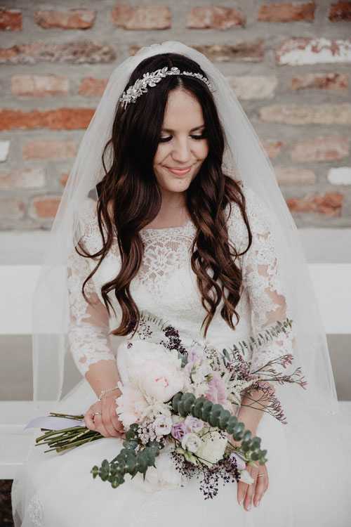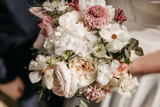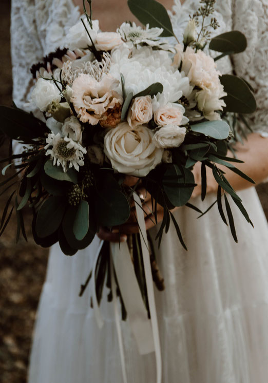 Nadelkissen, Buschröschen, Lisianthus, Chrysanthemen,Eukalyptus